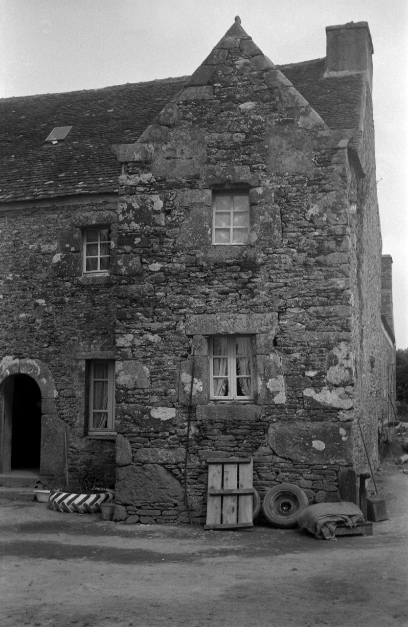 Plougonven, Lescuz, maison à avancée (état 1970)Immatriculation