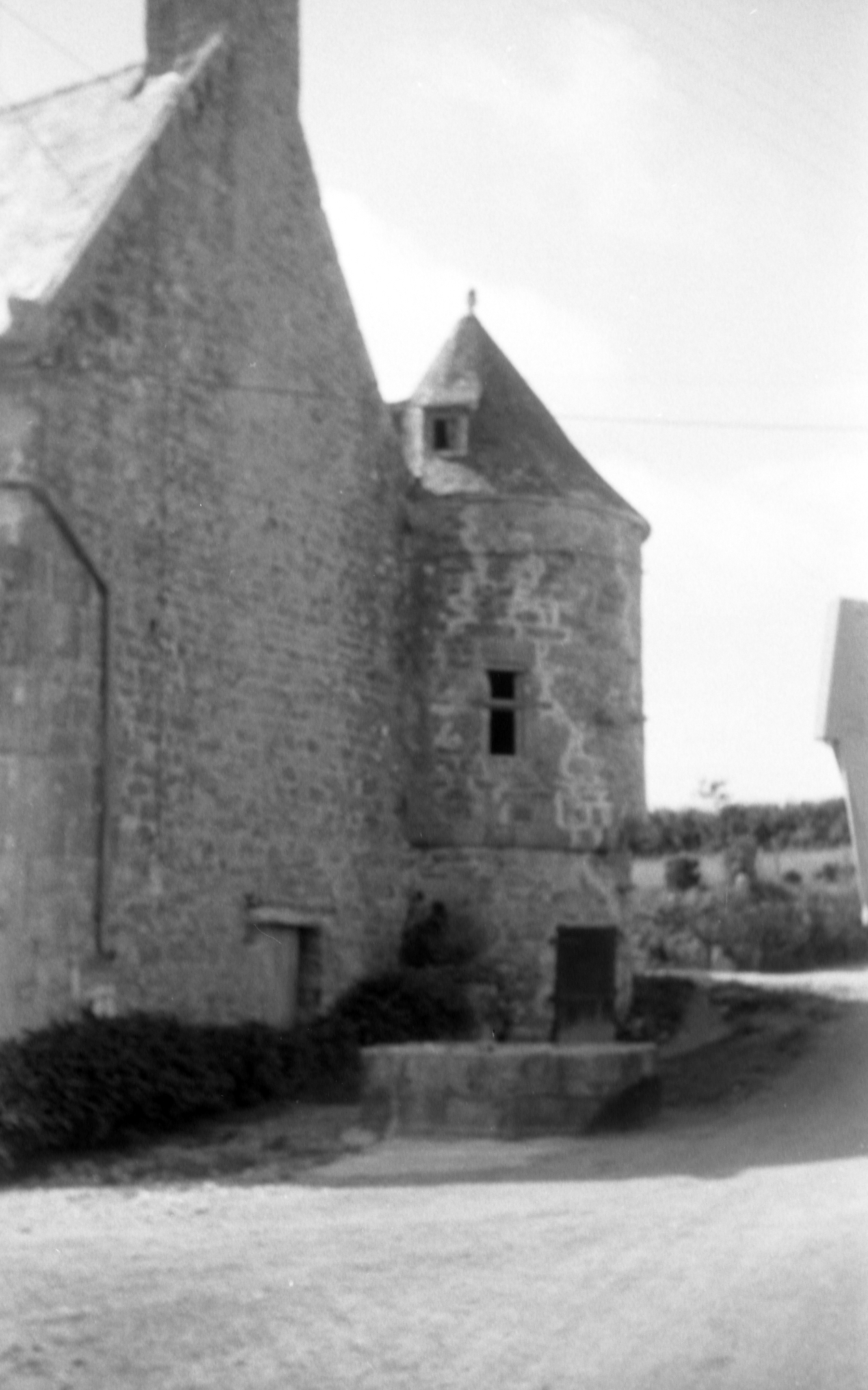 Tourelle nord-est et pierres de l'ancien puits déplacées à l'extérieur, vue générale prise du sud. (1970)Immatriculation
