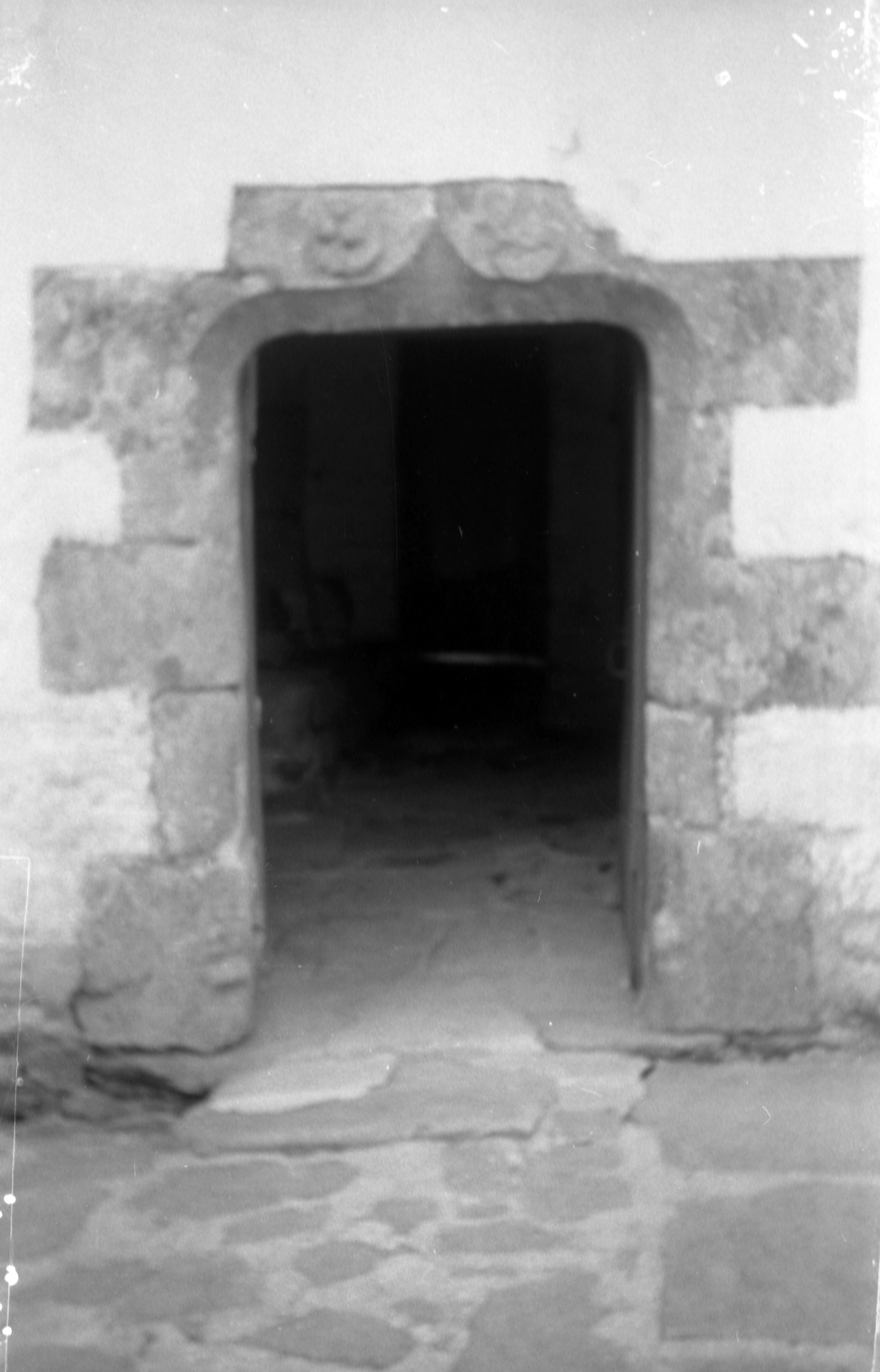Moulin de Castellien, élévation antérieure ouest. Détail de la porte d'entrée avec blason. (1970)Immatriculation