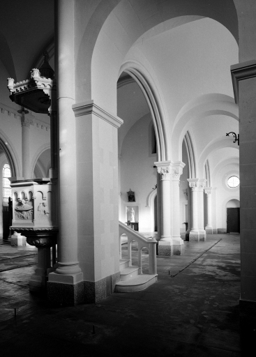 Intérieur, nef, bas-côté Nord : vue Nord-Est.Immatriculation