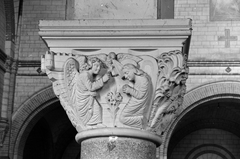 Chapiteau de la nef, 2ème pile sud, l'Annonciation.Immatriculation