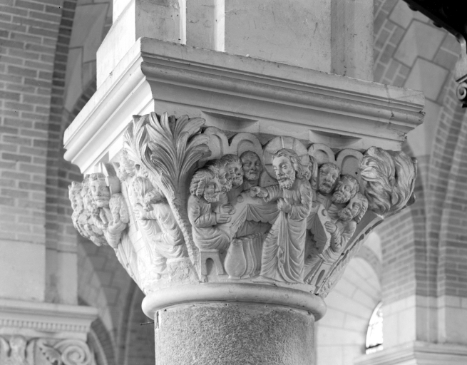 Chapiteau de la nef, 4ème pile nord, face est, les noces de Cana.Immatriculation
