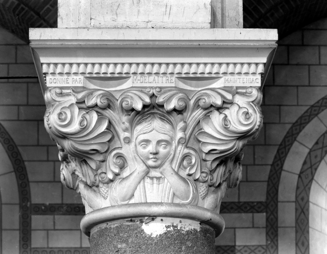 Chapiteau de la nef, 5ème pile nord, face sud, buste de femme.Immatriculation