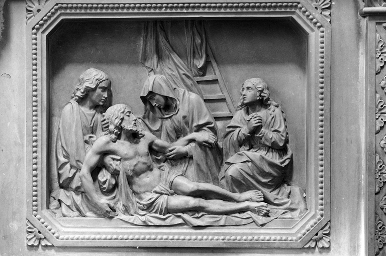 Autel retable nord, détail : La descente de croix.Immatriculation