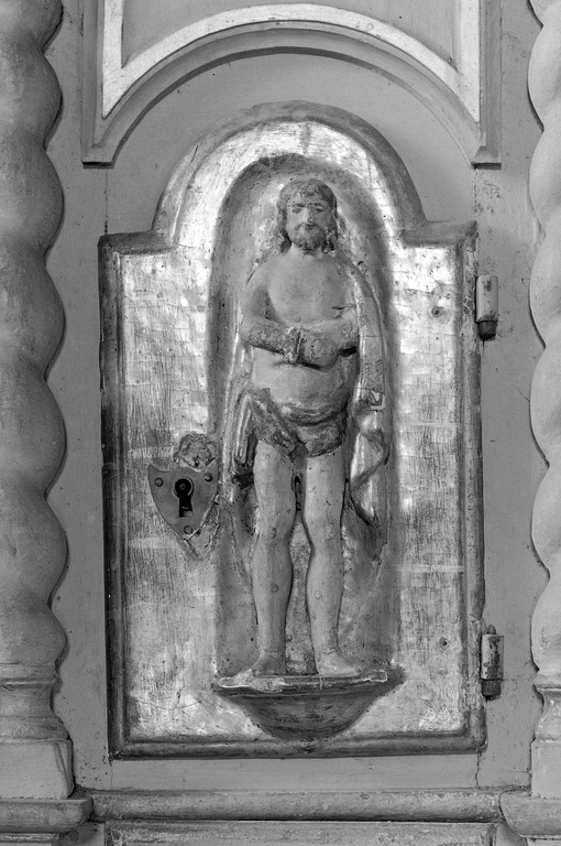 Retable de la chapelle, porte du tabernacle, vue de détail.Immatriculation