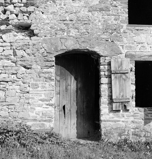 Ferme n°2, La Ferronnais, Façade sud, vue de détail de l'entrée.Immatriculation