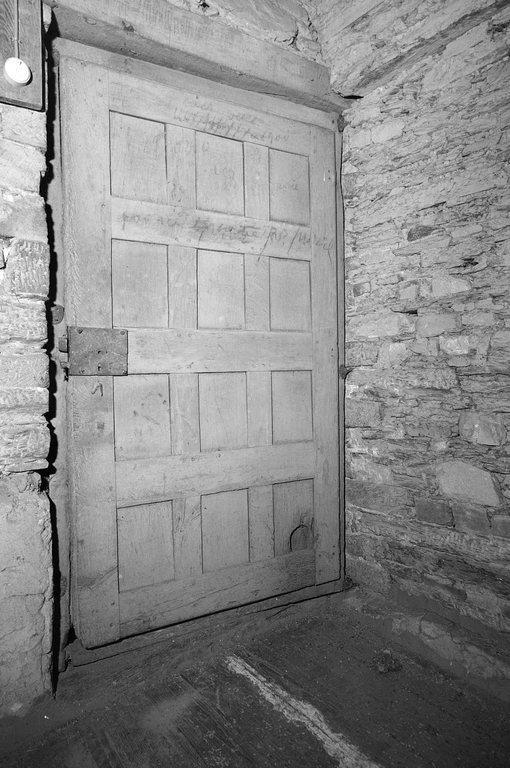 Etage, pièce nord, porte, face postérieure, vue générale.Immatriculation