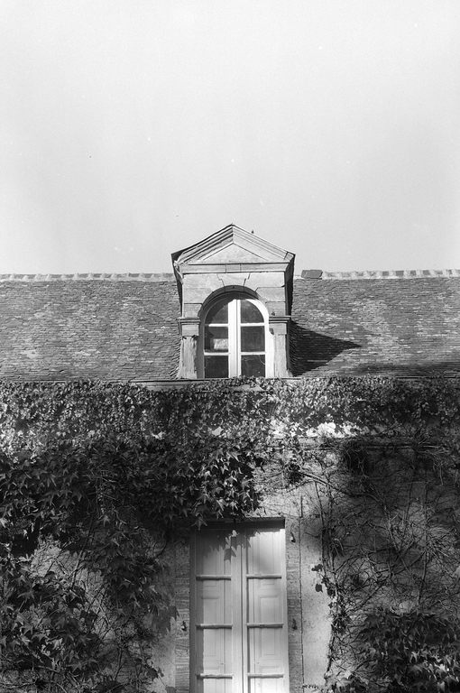 Façade sud, vue de détail d'une lucarne.Immatriculation