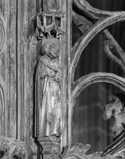 Jubé - Face ouest, statuette d'apôtre située sur le troisième montant de la clôture en partant du sud.Immatriculation