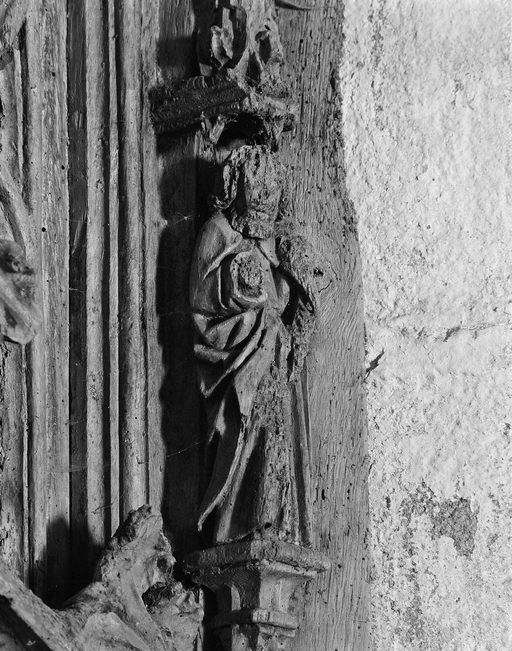 Jubé - Face ouest, statuette d'apôtre située sur le premier montant sud de la clôture.Immatriculation