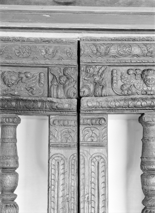 Porte du jubé, détail du motif central de la frise.Immatriculation