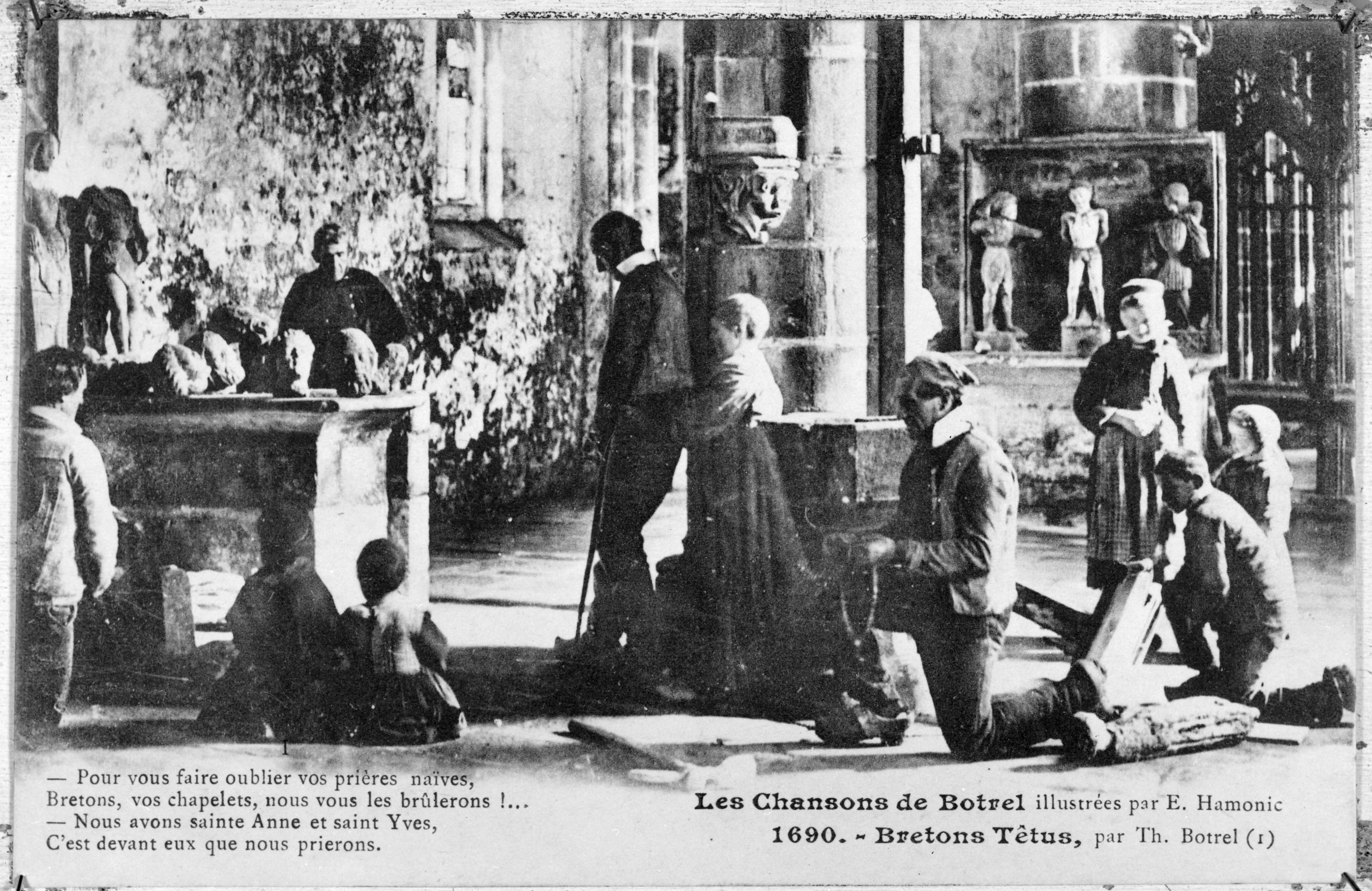 Carte postale ancienne - Fragments de statues sur l'autel du bas-côté nord.Immatriculation