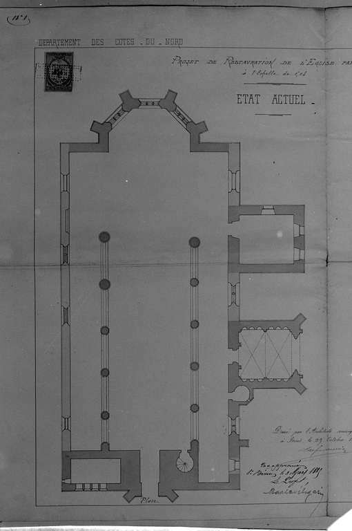 Dossier de restauration établi en 1884 par l'architecte Le Guerranic, planche datée du 29 octobre : détail du planImmatriculation