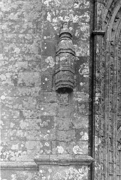 Face ouest de la tour, 1er niveau : niche à dais sur le contrefort nordImmatriculation