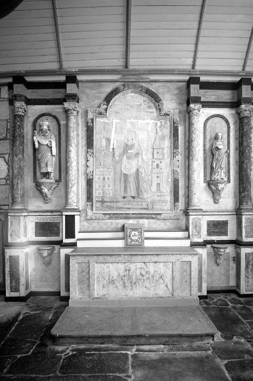 Autel, retable (autel secondaire, retable architecturé), dit retable de sainte Barbe, église paroissiale Saint-Blaise (Bulat-Pestivien),