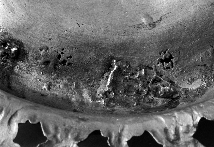Calice, pied : poinçons (à droite : I et hermine ; à gauche : couronne)Immatriculation