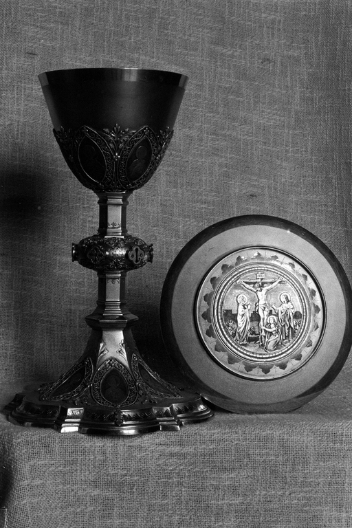 Calice, patène, style néo-gothique, église paroissiale Saint-Judoce (Lohuec),
