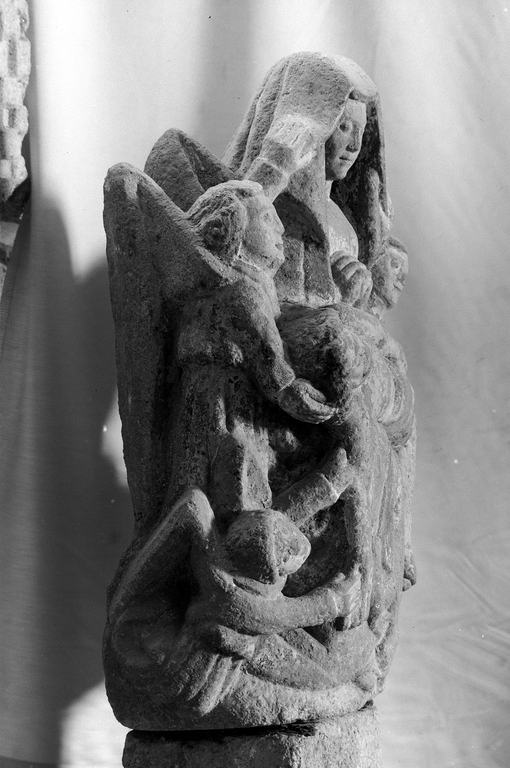 Groupe sculpté (d'applique, demi-nature) : Vierge de Pitié, église paroissiale Notre-Dame-des-Grâces (Plusquellec),