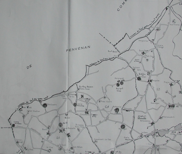 Extrait de la carte du patrimoine de Plouguiel, 1971 : section C et D1 de la commune, en limite de Penvénan (Nicole Chouteau)Immatriculation