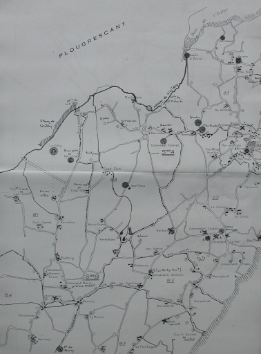 Extrait de la carte du patrimoine de Plouguiel, 1971 : section B de la commune, en limite de Plougrescant (Nicole Chouteau)Immatriculation