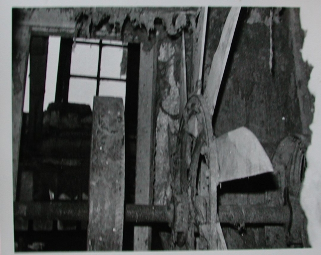 Vue du mécanisme intérieur du moulin : le système de transmission (Nicole Chouteau, 1971, SRI)Immatriculation