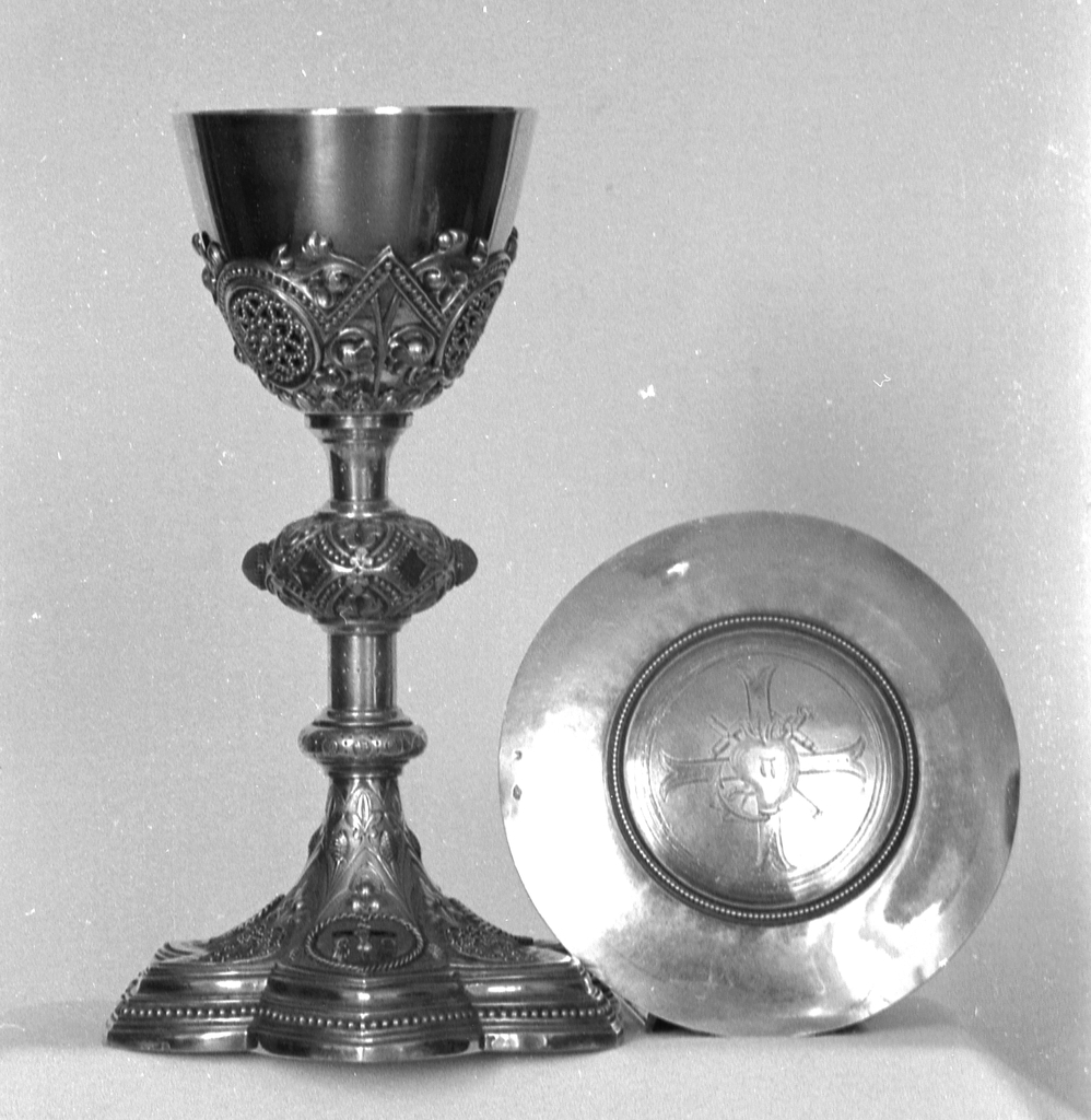 Calice, patène (3), style néo-gothique, église paroissiale Sainte-Madeleine (Dinéault),