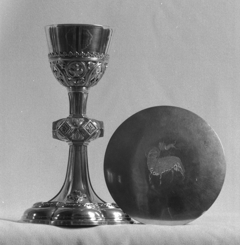 Calice, patène (4), style néo-gothique, église paroissiale Saint-Ouen (Quéménéven),