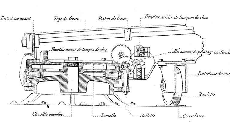 Plan détaillé d'un l'affût pour canon de 32 cmImmatriculation