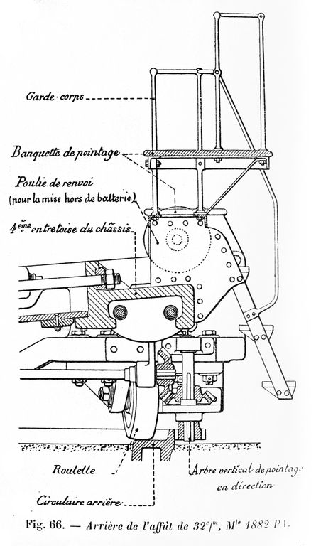 Plan détaillé de l'arrière de l'affût modèle 1882 PA pour canon de 32 cmImmatriculation