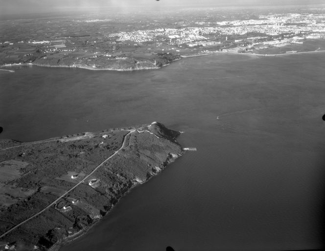 Vue aérienne de la pointe des Espagnols en 1971. En arrière plan : la ville de Brest et la base de sous-marinsImmatriculation