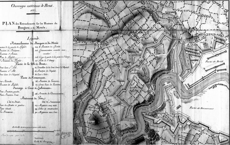 Ouvrages extérieurs de Brest, 1777 : plan des retranchements sur les hauteurs du Bougen et du MenèsImmatriculation