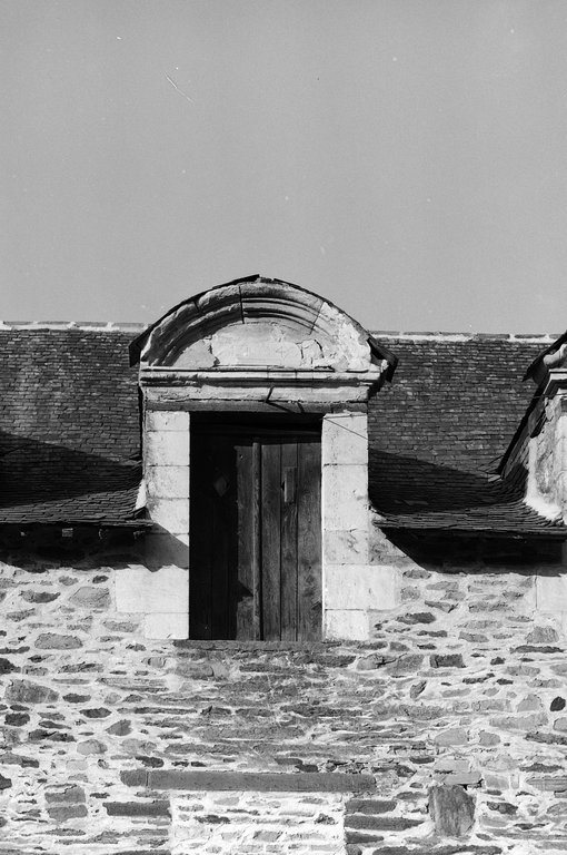 Façade, partie centrale, vue de détail d'une lucarne.Immatriculation