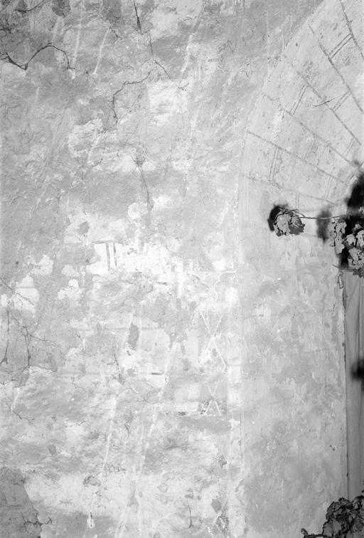 Chapelle, fresque, mur est, détail, bandeau de la fenêtre.Immatriculation