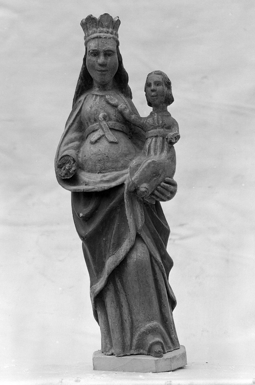 Chapelle, statuette de Vierge à l'Enfant, vue de face.Immatriculation