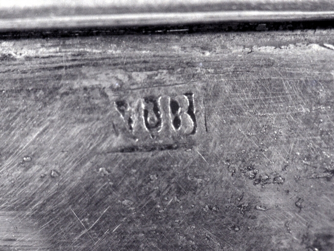 Détail, poinçon sur la coupe.Immatriculation