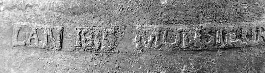 Cuve de baptême (1815, Georgelin) : détail de l'inscriptionImmatriculation