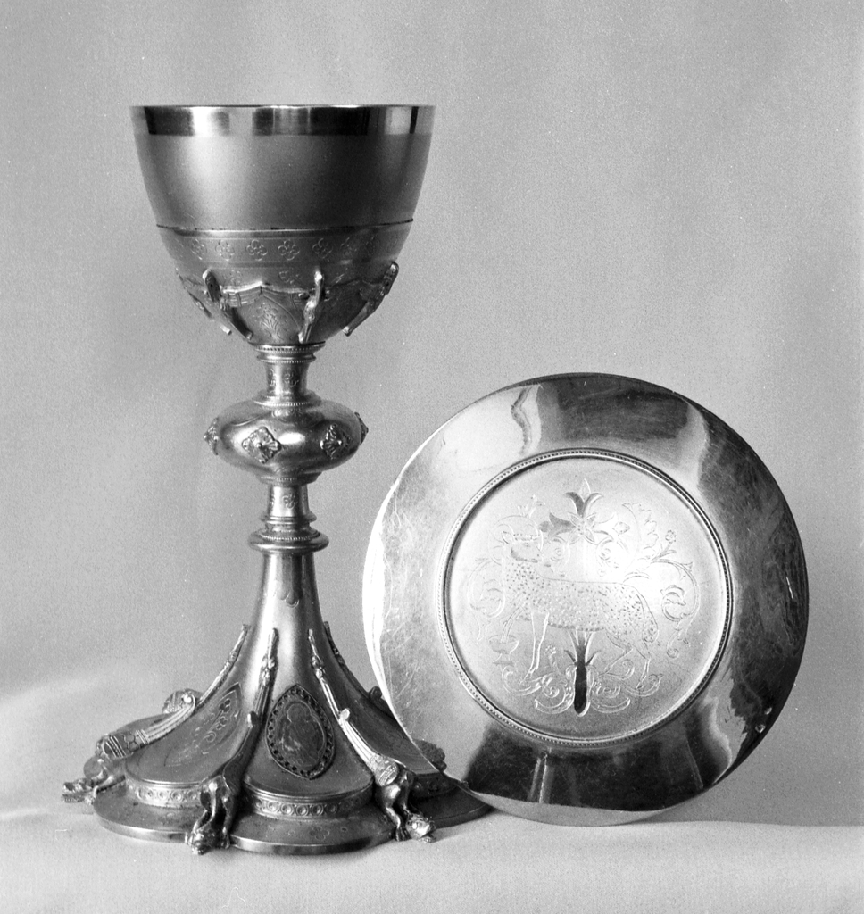 Calice, patène (2), église paroissiale Saint-Mélaine (Meslan),