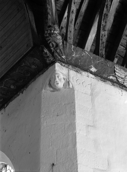 Angle sud-est de la croisée : tête et inscriptionImmatriculation