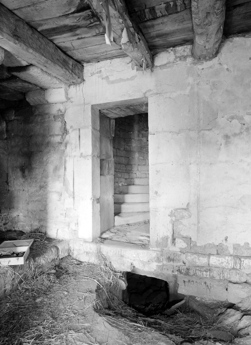 Pièce ouest, porte de l'escalier et ouverture sur le sous-solImmatriculation