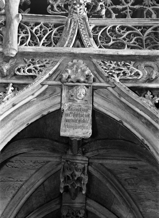 Jubé - Face ouest, inscription de la tribune à gauche, dégagée en 1971 par M. Hémery.Immatriculation