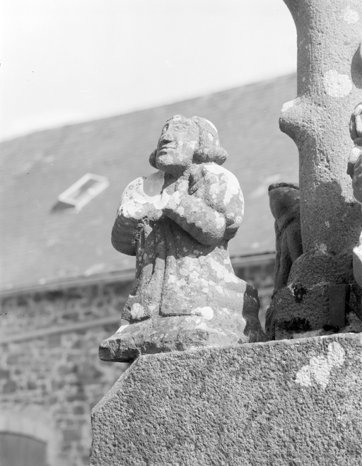 Calvaire, socle, détail personnages priant, vue de trois-quartsImmatriculation