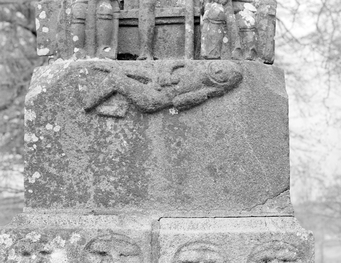 Calvaire, socle, détail du soldat couchéImmatriculation