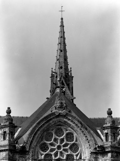 Plomodiern, église paroissiale Saint-Mahouarn : façade est, détail amortissement, état en 1972Immatriculation