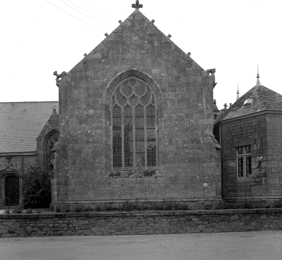 Plomodiern, église paroissiale Saint-Mahouarn : façade sud, pignon du transept, état en 1972Immatriculation