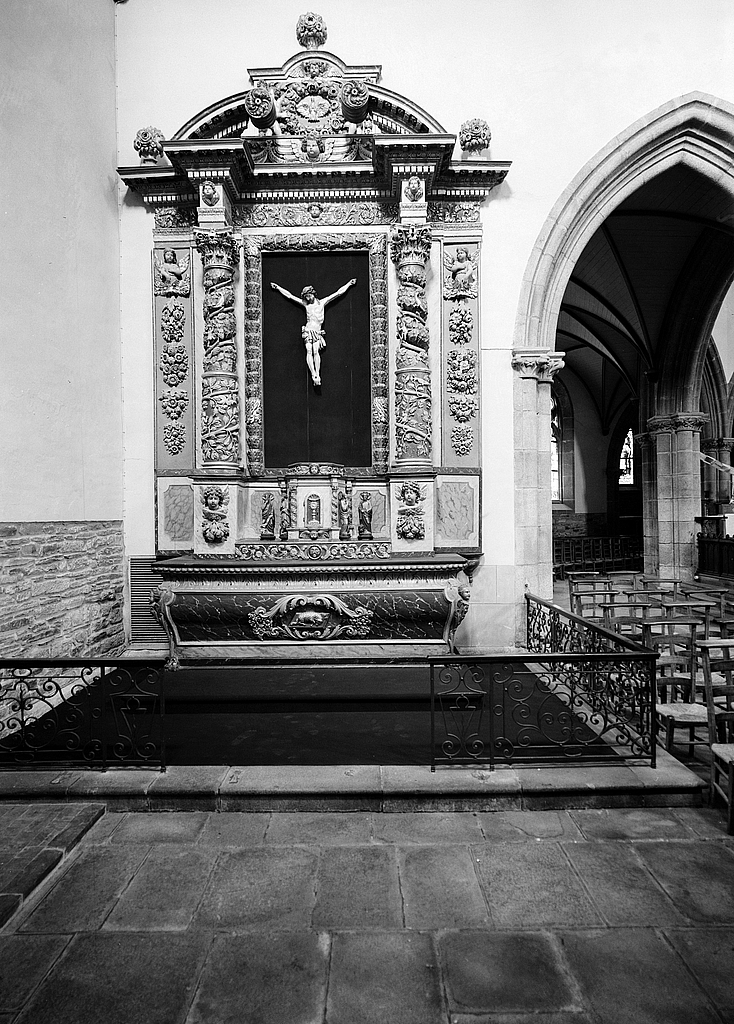 Autel, retable, tabernacle, gradin d'autel (autel secondaire, retable architecturé), église paroissiale Saint-Idunet (Châteaulin),