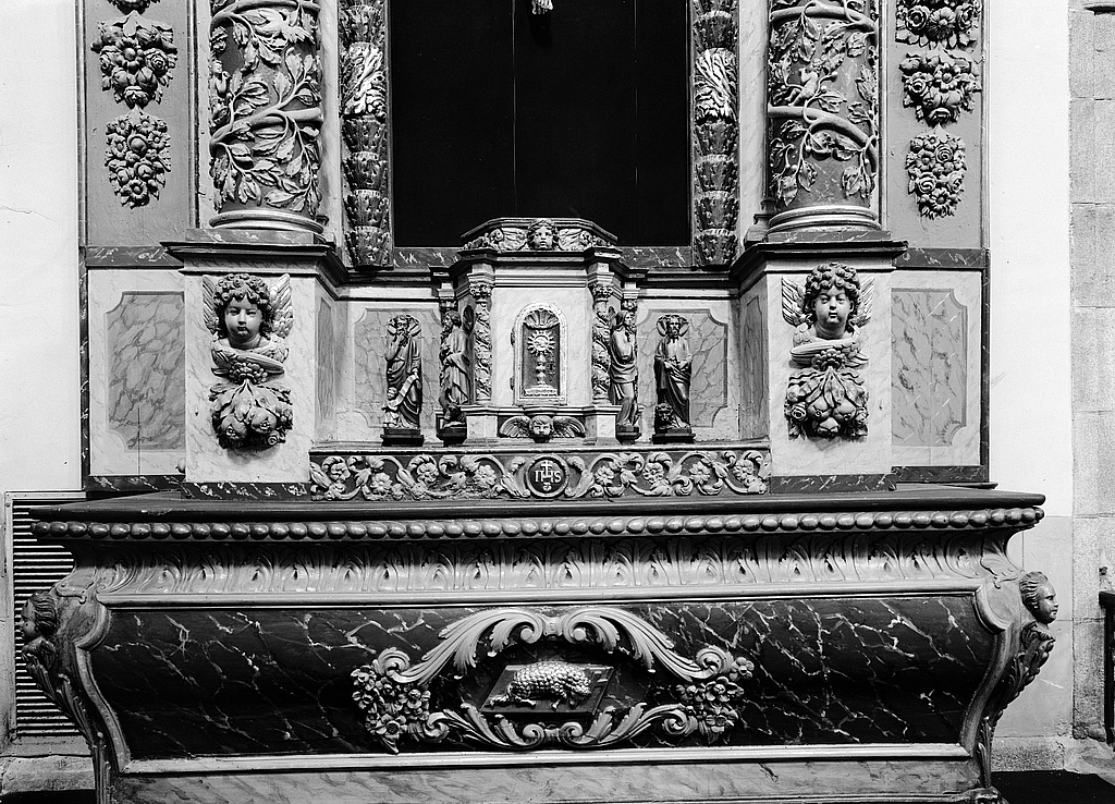 Autel, retable, tabernacle, gradin d'autel (autel secondaire, retable architecturé), église paroissiale Saint-Idunet (Châteaulin),