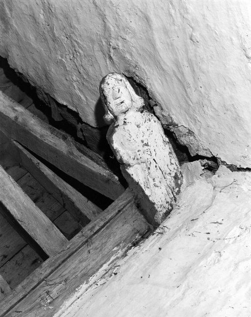Intérieur : nef, angle sud-ouest, blochet.Immatriculation