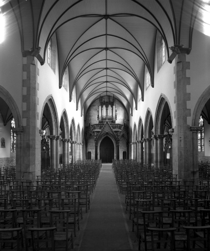 Châteaulin, église paroissiale Saint-Idunet : nef, vue axiale vers l'ouest, état en 1972Immatriculation