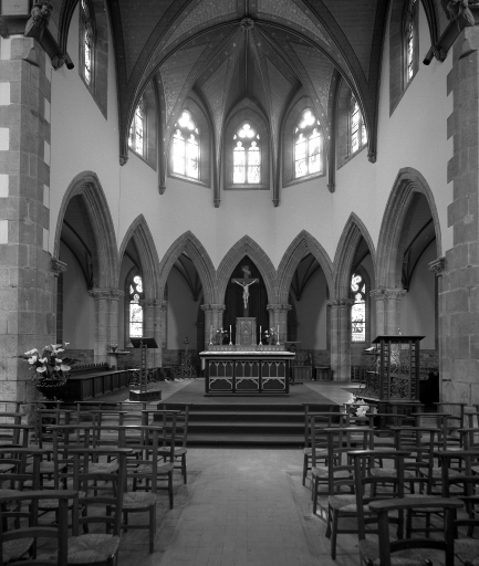 Châteaulin, église paroissiale Saint-Idunet : choeur, vue axiale vers l'est, état en 1972Immatriculation