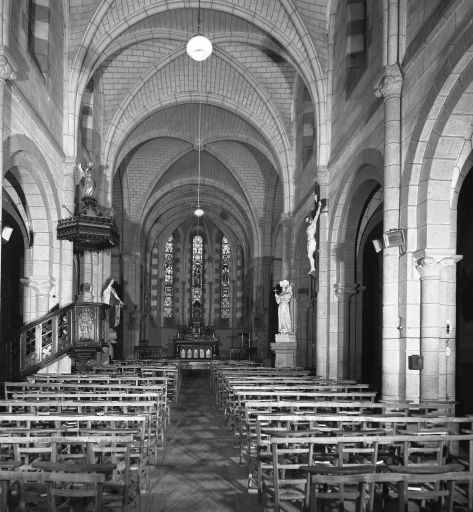 Saint-Ségal, église paroissiale Saint-Séverin : intérieur, nef vers l'est, état en 1972Immatriculation